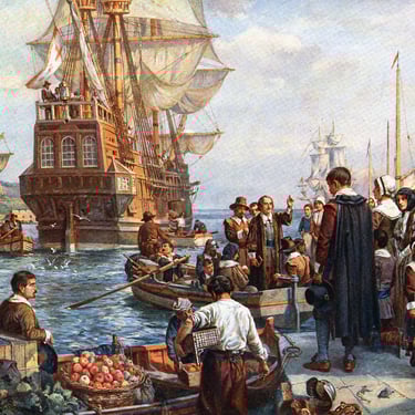 The Pilgrim Fathers Mayflower departure.